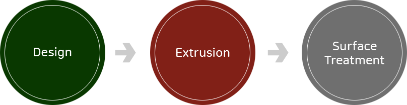 Now, His System can handle all processes required for aluminum processing—from aluminum die design to extrusion production and final surface treatment—Non-Stop and all in one location.